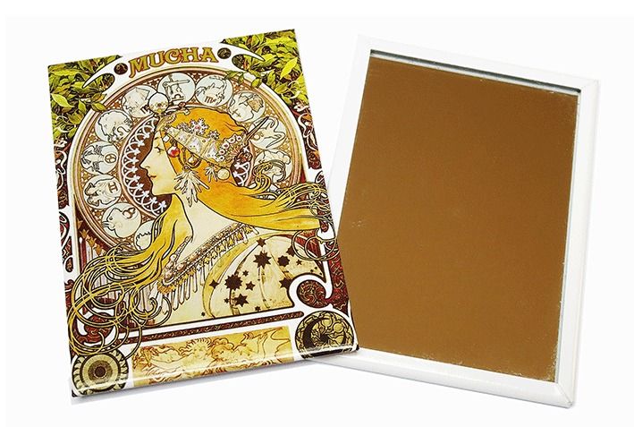 Zrcátko s nádherným motivem Alfonse Muchy. Praktický dárek nebo suvenýr.