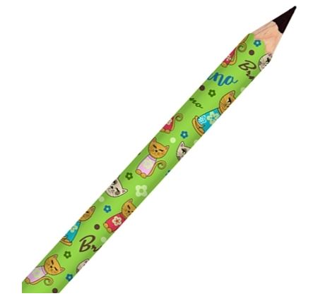 Grafitová tužka Brno s gumou – nápis Brno, kočky a květiny, světle-zelená.